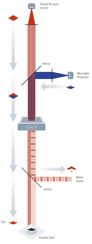 Seurat Technologies developed Area Printing® technology, a cutting-edge 3D-printing approach for metals that uses a powerful laser to quickly melt metal powder by splitting vertically and horizontally polarized infrared (IR) laser beams. In a 2024 research paper, the company shared that at almost 100 kilowatts, IR-patterned beams melt powder “layer by layer”. An optically addressed spatial light modulator (or light valve) with a photorefractive liquid crystal layer dynamically controls the pattern of the laser beams.